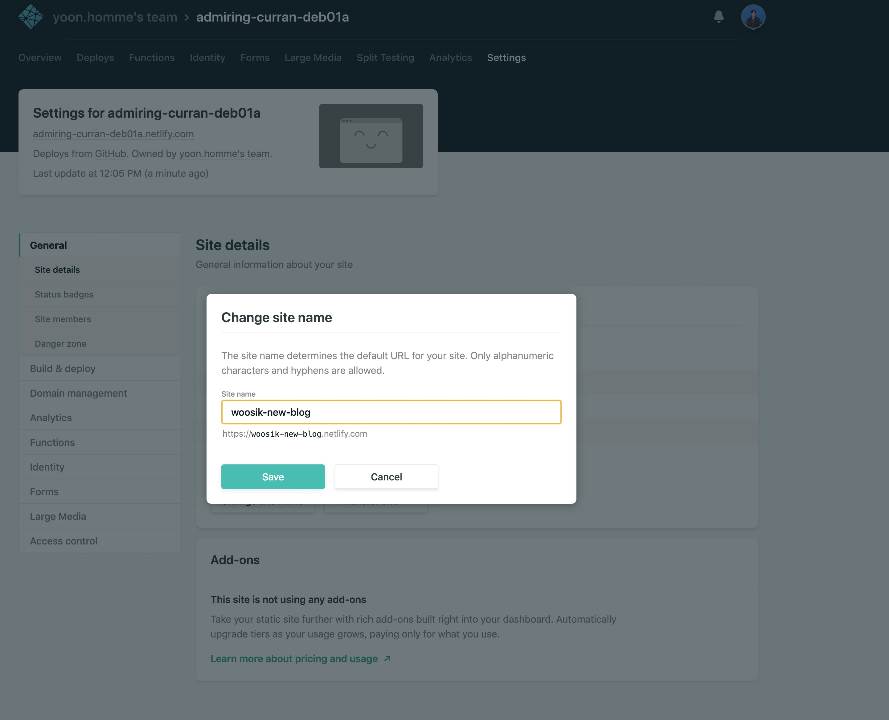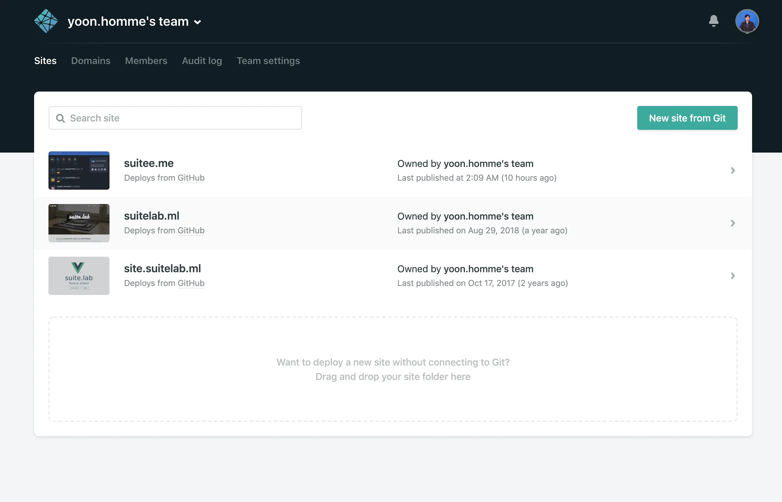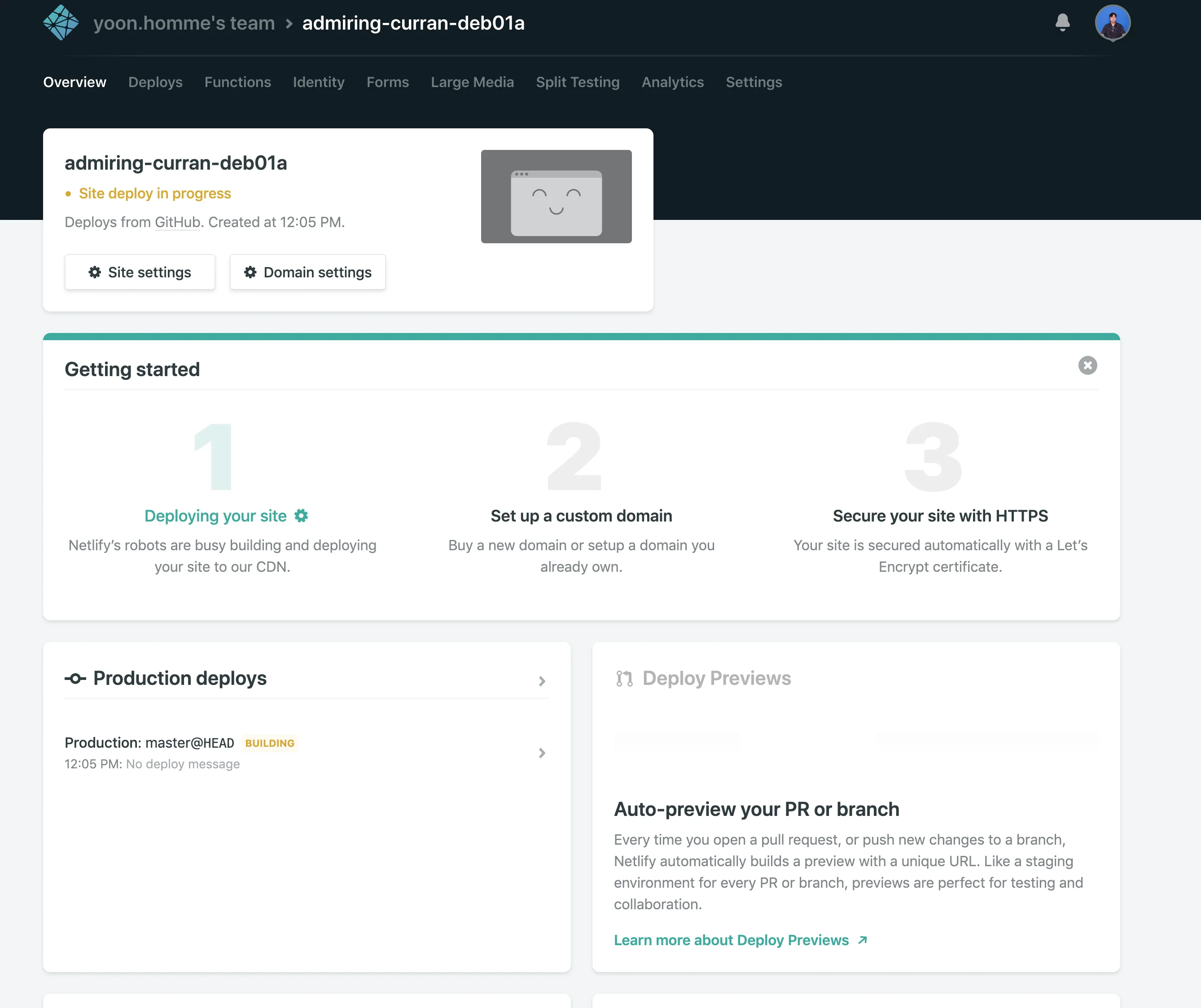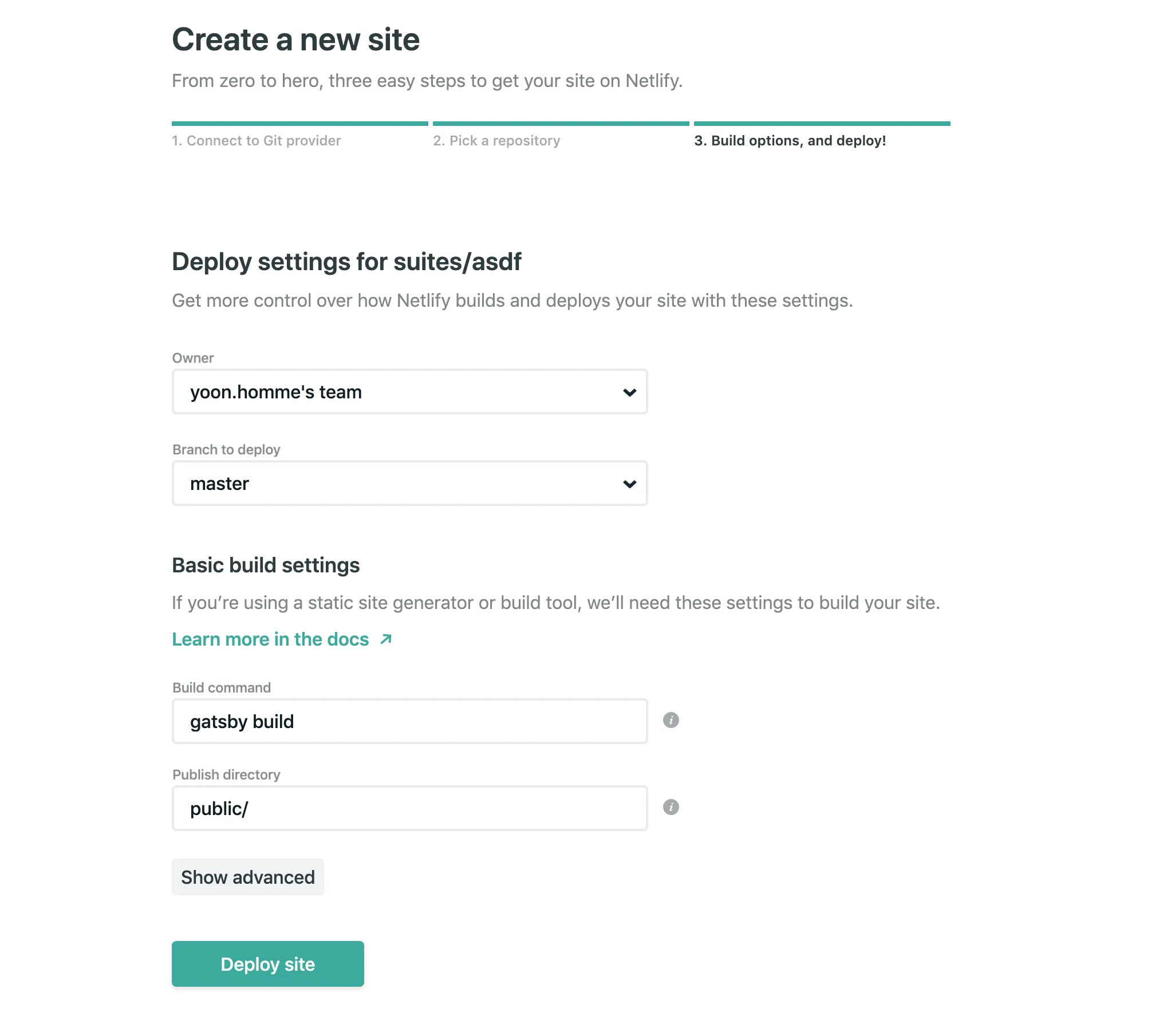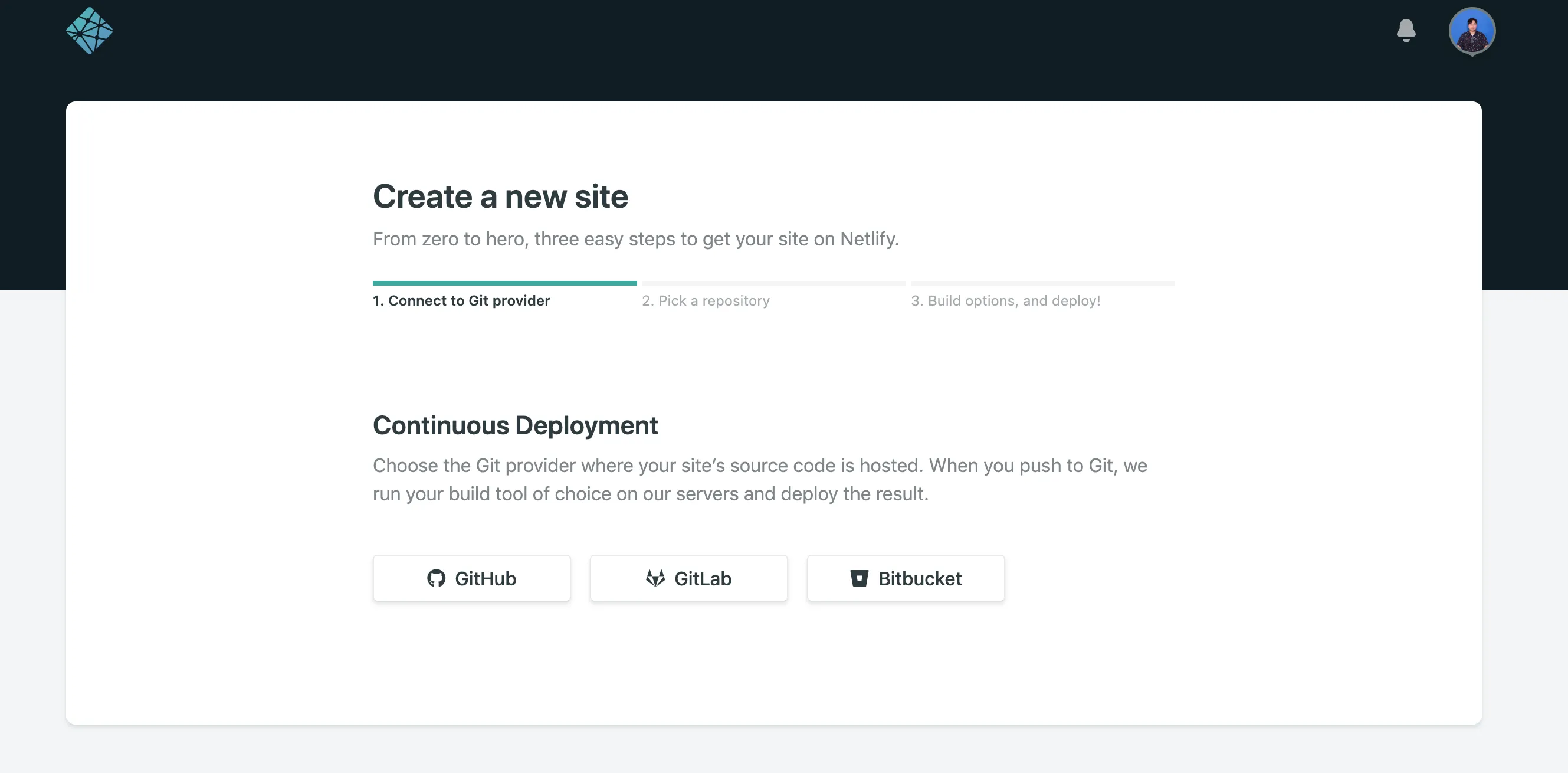 가입이 완료 되었으면 github repo와 netlify site를 연결해준다.